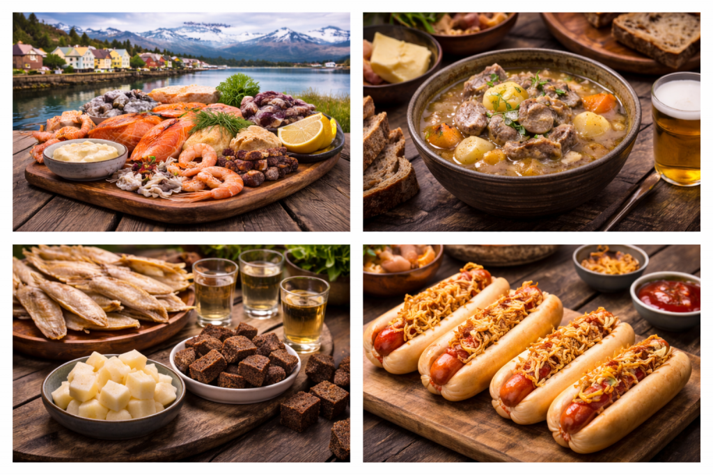 La gastronomie islandaise repose sur des produits locaux frais et des traditions anciennes. Le poisson, l’agneau, le skyr, les fruits de mer et les plats à base d’ingrédients locaux sont incontournables.