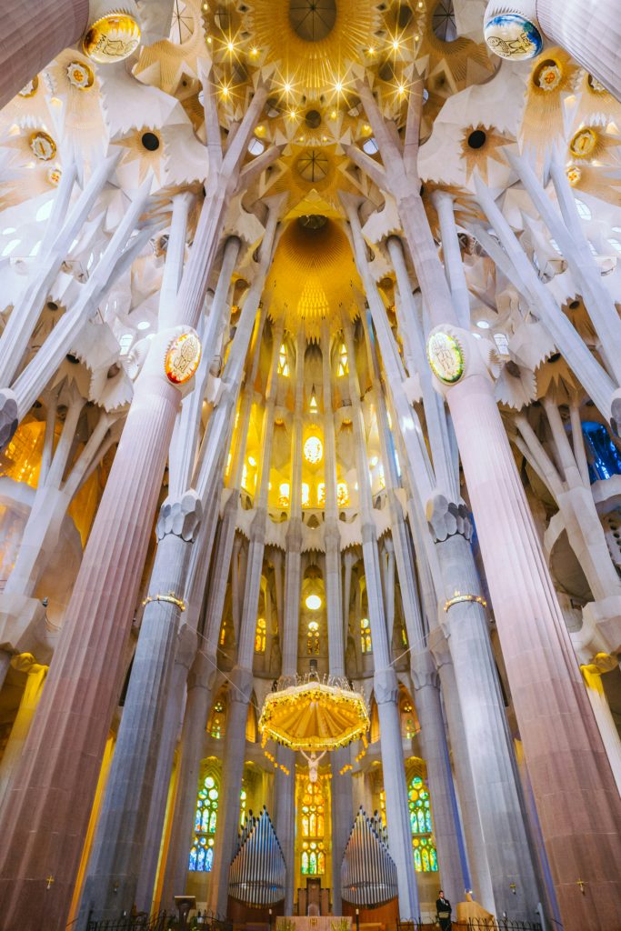 À l’intérieur, la lumière traverse les vitraux colorés et crée une atmosphère presque mystique, transformant l’espace en une véritable forêt de pierre baignée de couleurs. Toujours en construction plus d’un siècle après le début des travaux, la Sagrada Família symbolise à la fois la créativité sans limites de Gaudí et l’identité culturelle forte de Barcelone. La visiter, c’est découvrir une œuvre monumentale où architecture, spiritualité et imagination se rencontrent de manière spectaculaire.