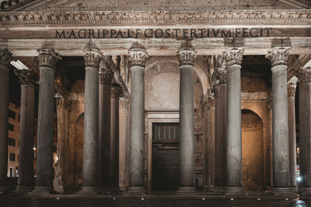 Le Panthéon est l’un des monuments antiques les mieux conservés au monde. Construit au IIᵉ siècle sous l’empereur Hadrien, il était à l’origine un temple dédié à l’ensemble des dieux romains. Sa coupole monumentale, percée en son centre d’un oculus laissant entrer la lumière naturelle, constitue une prouesse architecturale remarquable. Transformé en église au VIIᵉ siècle, le Panthéon est aujourd’hui un lieu de culte et un site incontournable pour les visiteurs, admiré pour son harmonie, sa grandeur et sa perfection architecturale.